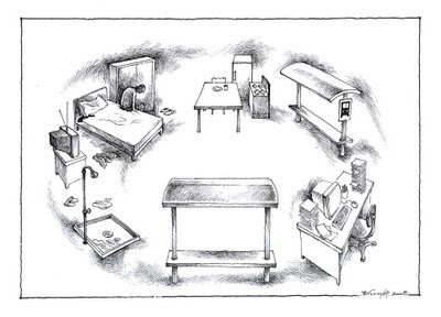 A las nueve, nueve y cuarto, la cena. Todos, salvo el padre, con fingida tranquilidad comen ligeramente sus platos. Nadie repite siquiera media ración, excepto el padre y en muy contadas veces la madre. Luego, la sobremesa, el momento de mayor tensión en la casa. Todos mirando el televisor, en silencio, excepto el padre, que sí mira los programas banales que transmite la misma. Hasta que alguien, el más valeroso de esa noche, abandona la mesa inescrupulosamente, dirigiéndose nuevamente hacia la PC. Desde las diez y media, los tres van turnándose el mando, a veces con amable petición, otras con descarada intromisión aprovechando cuando por alguna emergencia el licenciatario abandona la silla. Casi siempre es la madre que ríe último, y a las dos de la madrugada, la PC recién se apaga, no sin antes una borrada del historial.